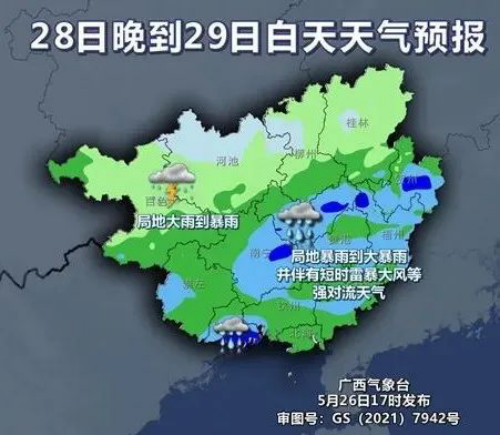 广西气象台预计,今日夜间将开启新一轮强降雨伴强对流过程。今天晚上到明天白天,桂林、柳州、河池东部、防城港有中到大雨、局地暴雨并伴有短时雷暴大风等强对流天气,其他地区多云间阴天有阵雨或雷雨、局地中雨。