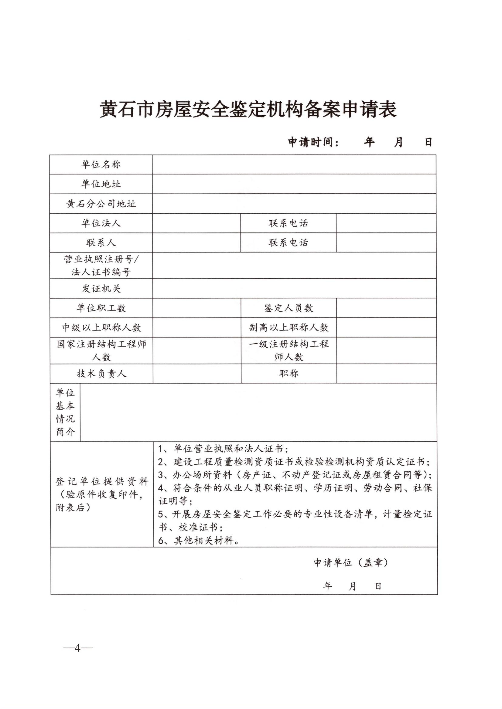 政策新闻 | 黄石市房屋安全鉴定机构备案申请表
