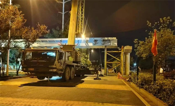4月26日凌晨,随着2台起重机将全钢结构的人行天桥稳稳地吊装在道路两边桥墩上,位于娄底市城区金星路的娄底四中人行天桥顺利完成主体架设,后续完成护栏等周边设施焊接安装和涂刷面漆后,预计到5月30日人行天桥将具备通行条件。