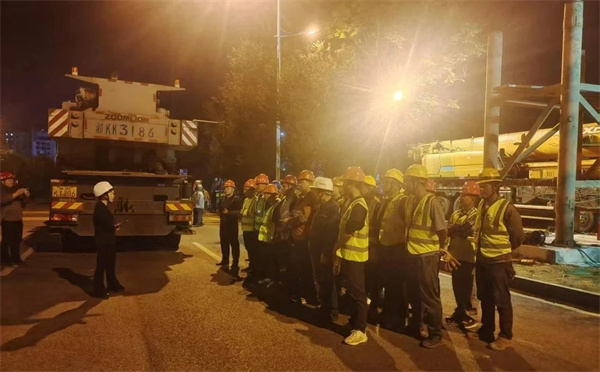 在桥梁主体吊装过程中,由于施工路段交通流量大,只能采用难度较大的桥梁箱体整体吊装。为确保安全施工,吊装过程中在交警部门的协助下,对金星路(乐坪大道至长青西街)的两处交叉路口实行了交通管制。