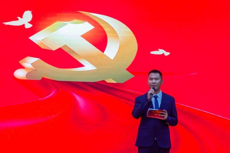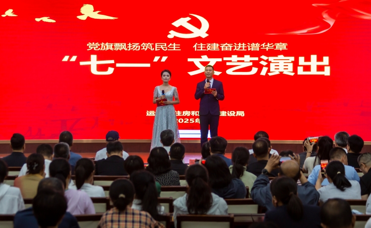 6月27日晚,市住建局各支部的党员正在表演自编自演的文艺节目喜迎党的生日。在中国共产党104年华诞来临之际,市住建局举办了“党旗飘扬筑民生 住建奋进谱华章”文艺表演,来自全系统9党支部2个总支的党员们,利用工作之余自编自演了12个以歌舞、朗诵、三句半、大合唱的文艺节目,喜迎“七一”党的生日。